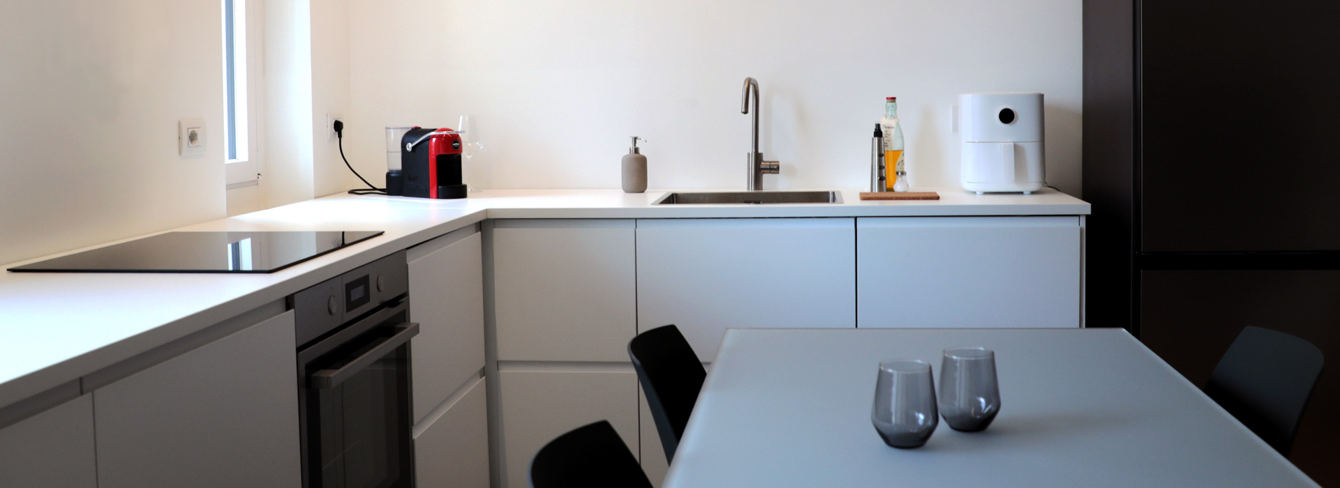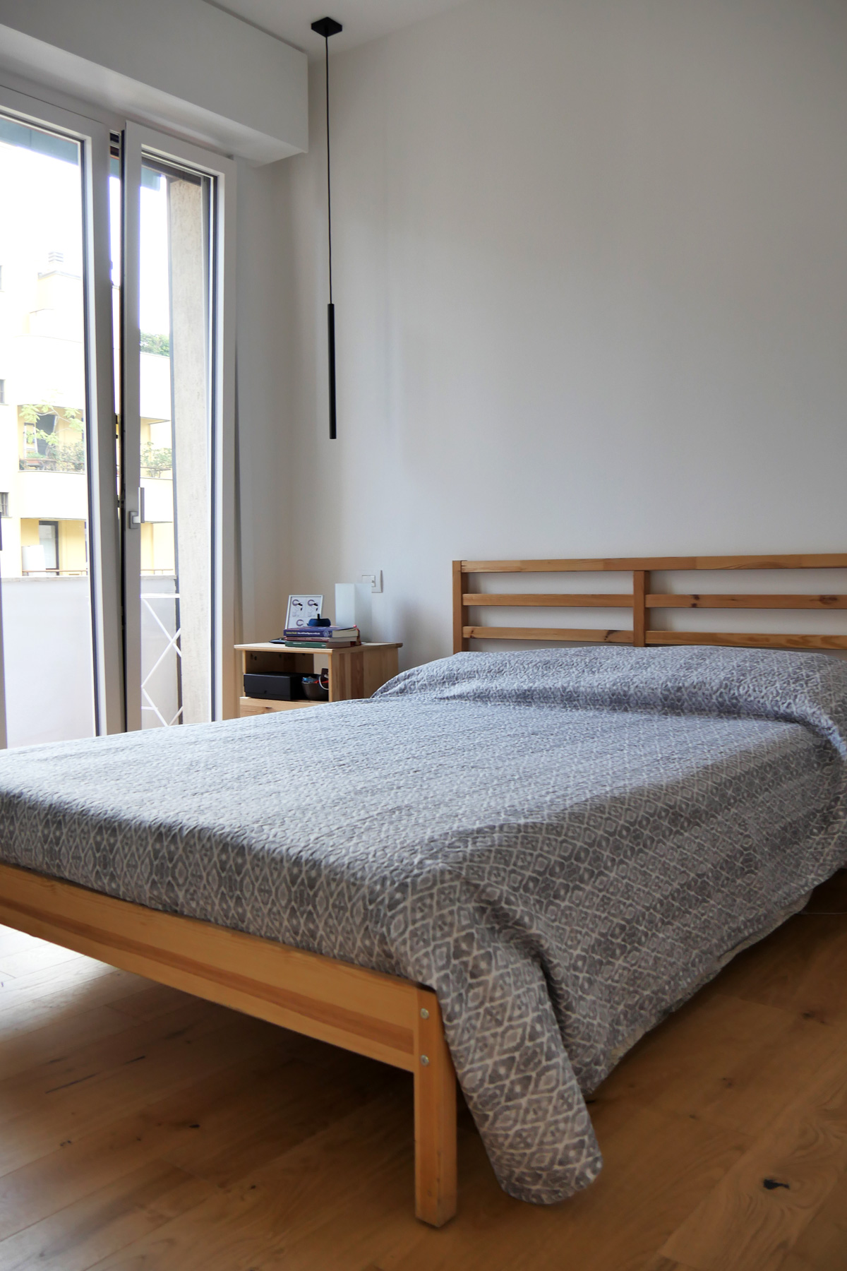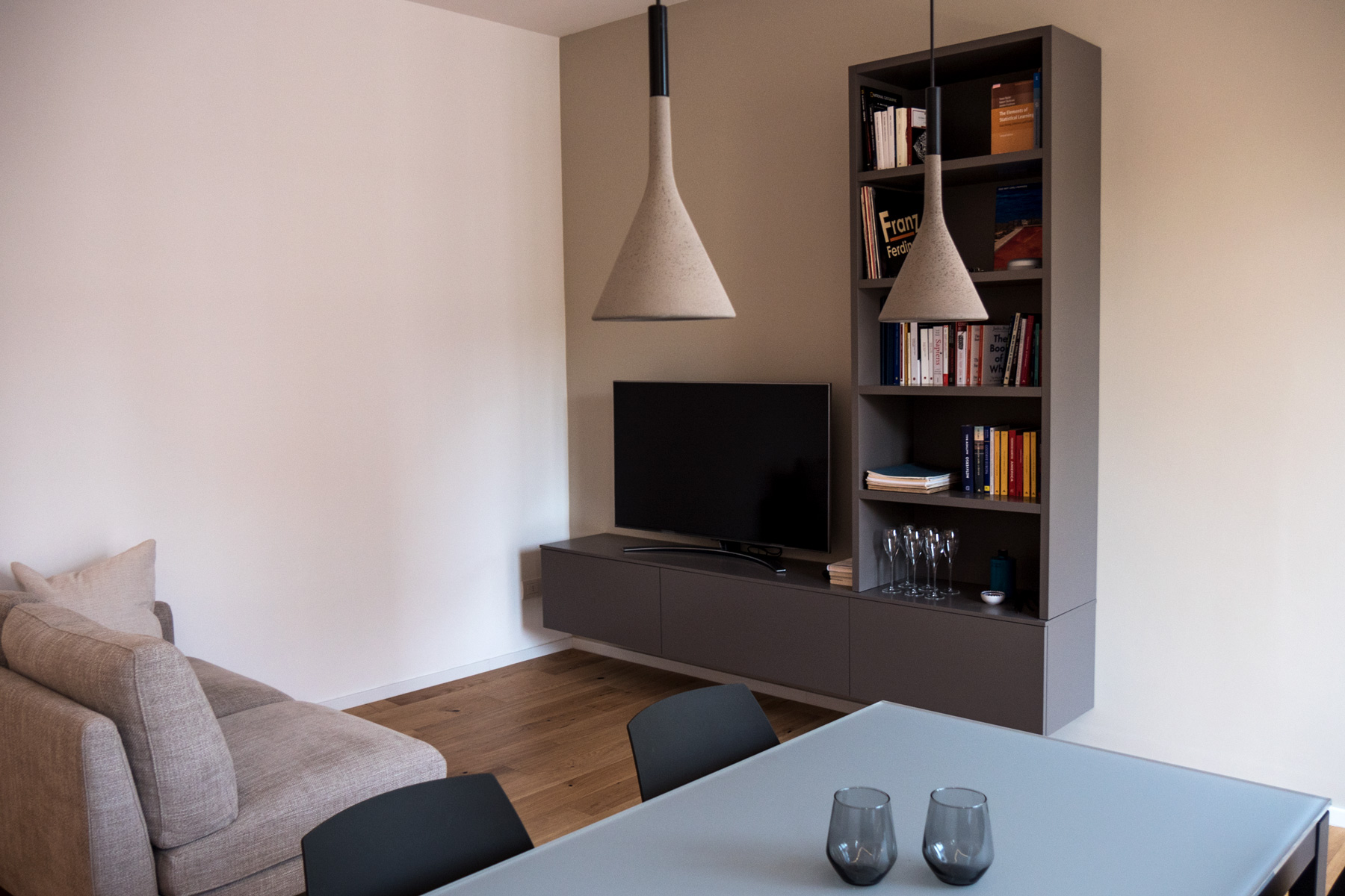 In zona Arco della Pace, abbiamo eseguito una ristrutturazione completa con modifica degli spazi interni e realizzazione della nuova impiantistica. Su richiesta della committenza è stato evitato l’utilizzo dell’utenza gas, installando un impianto a pompa di calore per la produzione di acqua calda sanitaria, mentre nella zona living è stato realizzato un controsoffitto con illuminazione LED dimmerabile. È stato posato parquet in tutto l’appartamento, mentre nel bagno sono state utilizzate piastrelle Marazzi Mystone Ardesia 75x150 cm, sanitari sospesi Ceramica Galassia Dream e radiatori Zehnder Charleston.