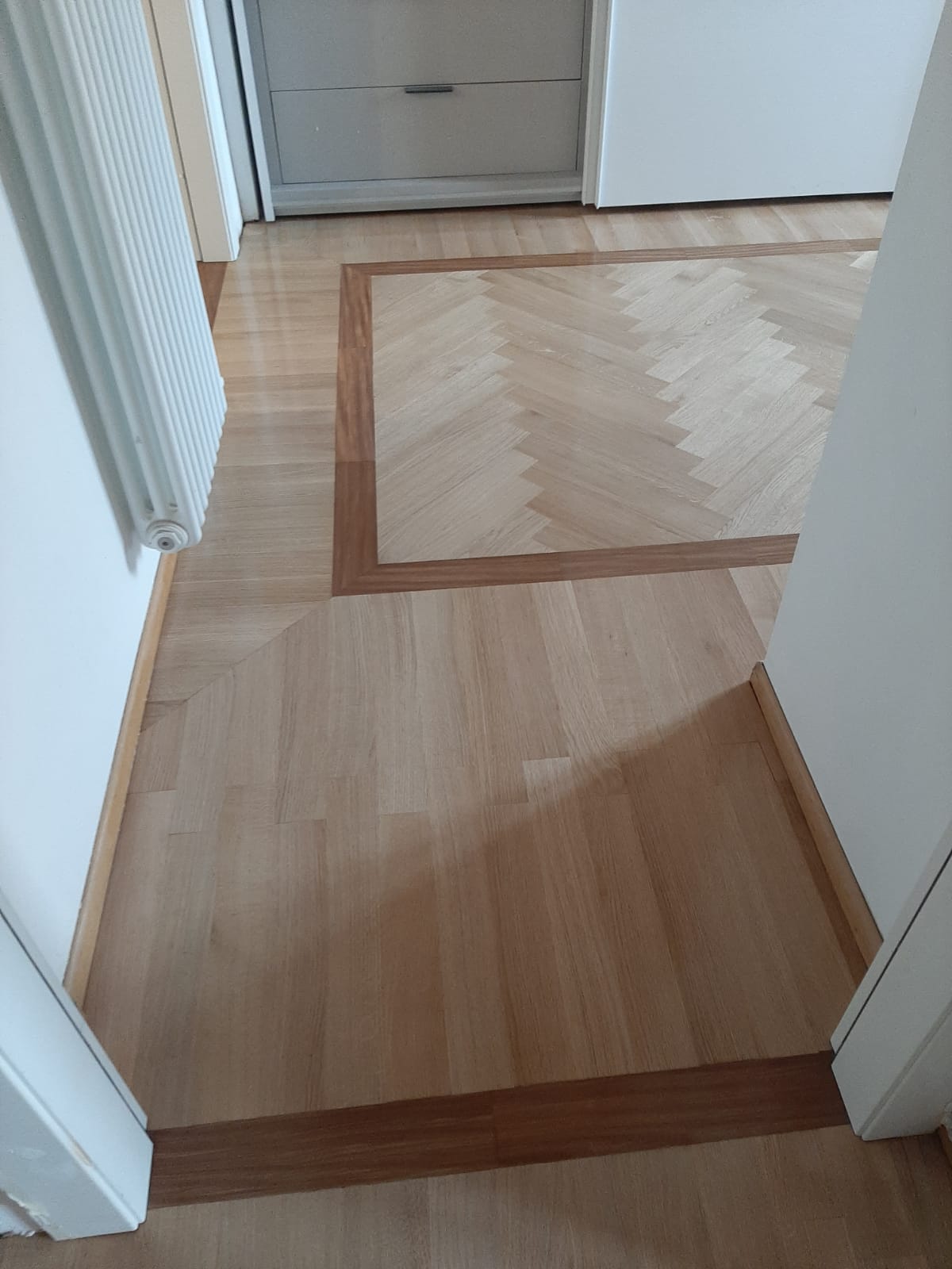 Nel quartiere Ortica, dove Jannacci esercitava come medico di base e si ritrovava al “Gatto Nero” (oggi Osteria del Generale), siamo intervenuti su un affascinante appartamento di ringhiera, ristrutturando il bagno, l’impianto elettrico e l’impianto idrotermosanitario, oltre al carteggio e ritinteggio delle travi a vista. Particolare rilievo ha avuto il recupero del parquet: alcune porzioni ammalorate e distaccate sono state risanate, lamate e infine verniciate. Il risultato è stato un netto effetto prima/dopo, riportando la superficie alla qualità estetica e materica originaria. La committenza ha infine valorizzato cucina e soggiorno con una palette di colori pastello che ha aumentato luminosità e coerenza dell’insieme.